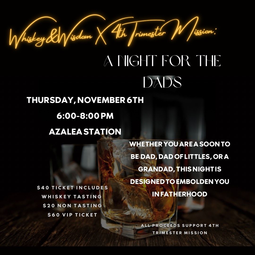 Whiskey & Wisdom and 4th Trimester Mission are teaming up for A Night for the Dads — a relaxed evening of connection, good conversation, and a little whiskey at Azalea Station on Thursday, November 6, from 6–8 PM.
