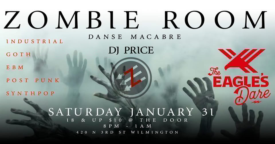 ![]() Masquerade BallSAT JAN 31: 6PM @ Dans Pros N&V - ILM | ![]() Zombie RooomSAT JAN 31: 8Pm - midnight @ The Eagle's Dare - DT |