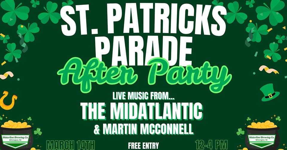 ![]() St. Patrick's Day Weekend Extravaganza at Tap YardFRI-SUN MAR 13-15: All Day @ Tap Yard - ILM | ![]() St Patrick's Parade AFTER PARTYSAT MAR 14: 12-4PM @ Waterline Brewing Co. - DT |
